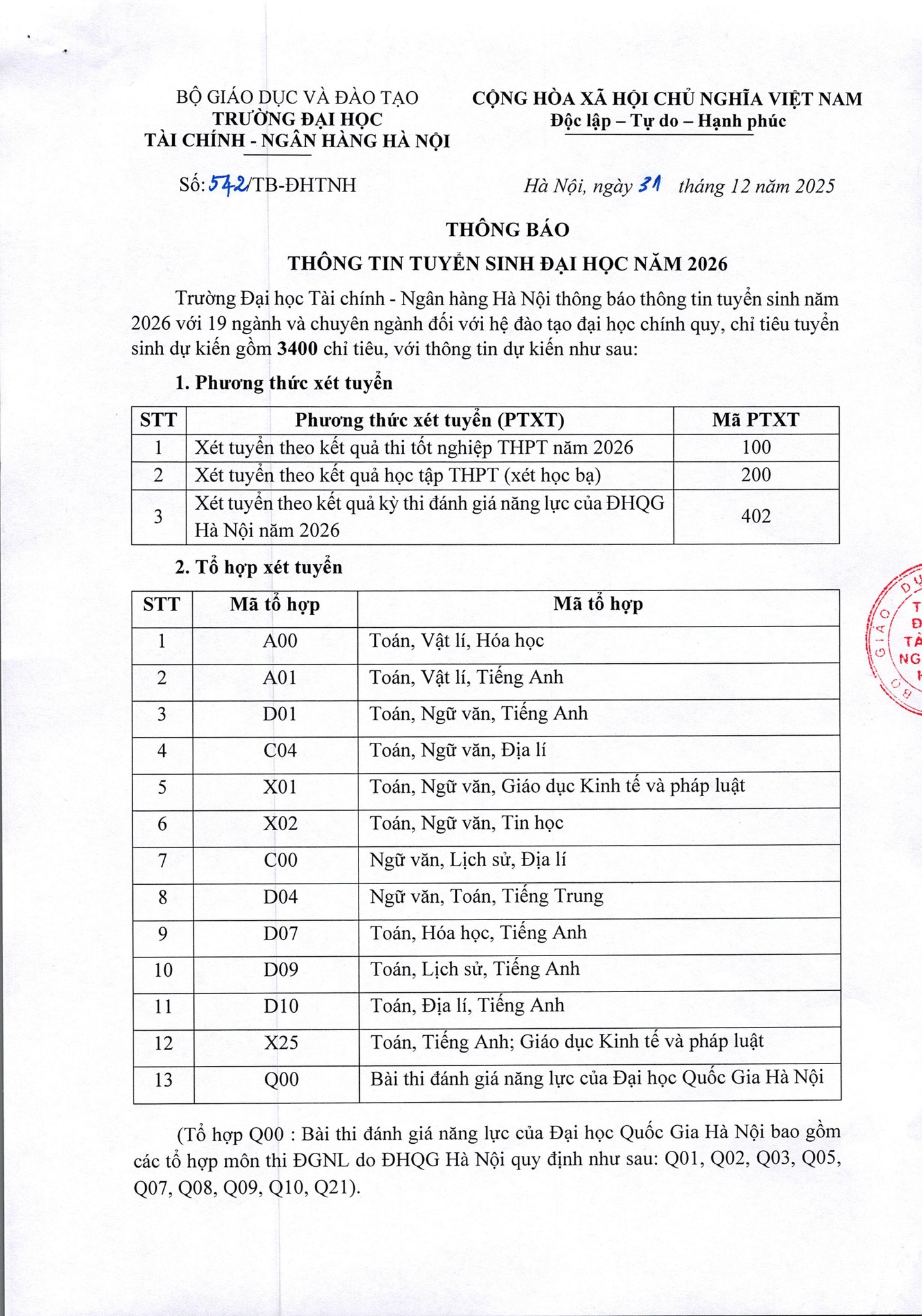 Thông tin chi tiết về tuyển sinh đại học năm 2026 sẽ được Nhà trường tiếp tục cập nhật trong các thông báo chính thức trên website và các kênh truyền thông của Trường.